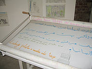 In einem zweiten Werkkomplex werden Zeichnungen und Schriftzeichen in der jeweiligen Heimatsprache auf lange Papierbahnen aufgebracht. Diese spiegeln aus den unterschiedlichen Blickwinkeln der Kinder und Jugendlichen deren Lebensgefühl in Deutschland und insbesondere Oldenburg wider.